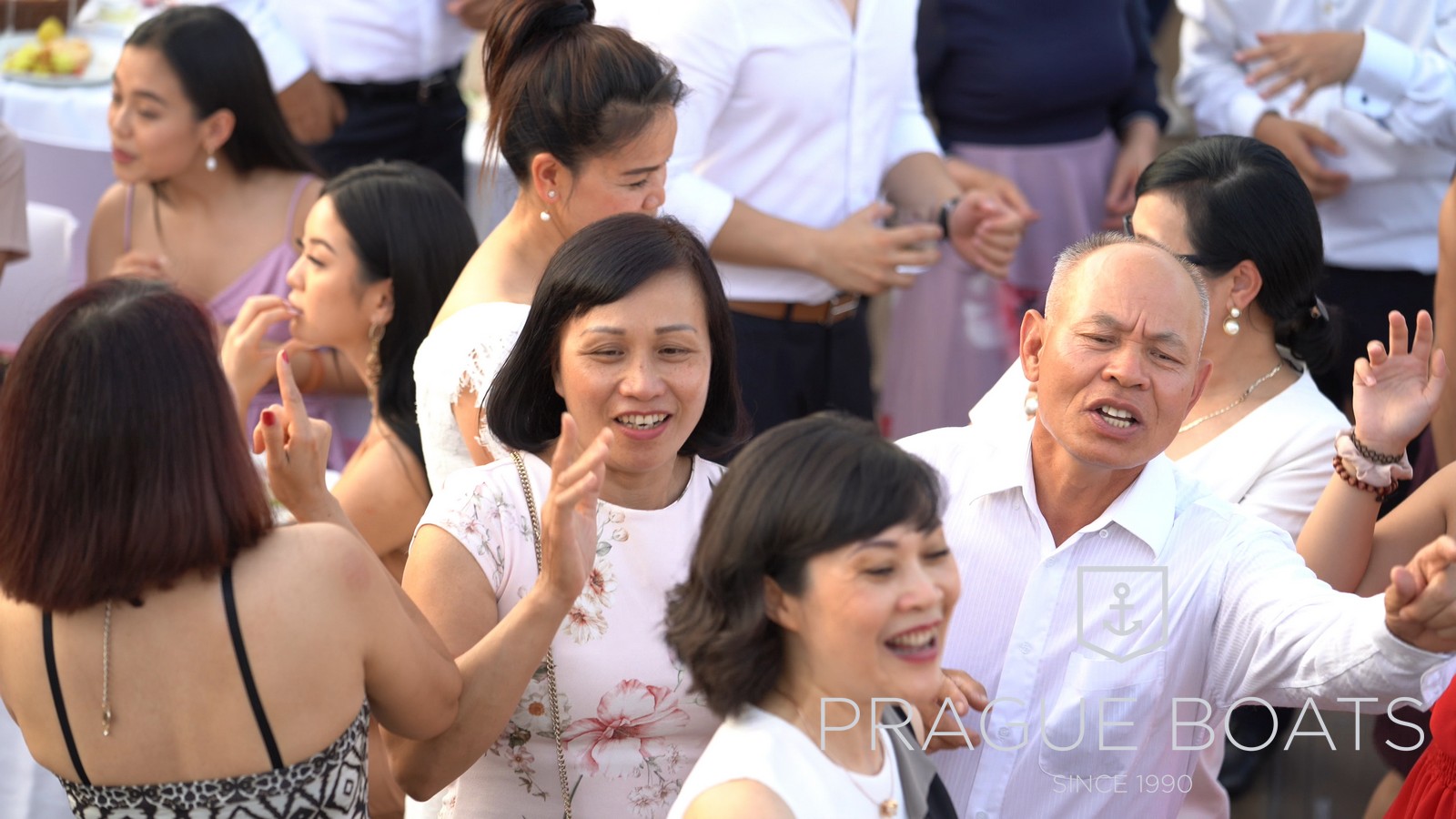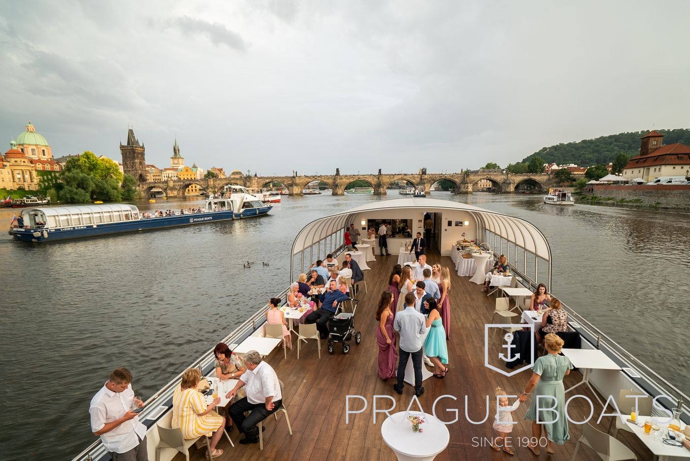 The Bohemia Rhapsody is an ideal setting for bigger events as it can accommodate up to 200 guests for a cocktail party. Arrangement of tables for a reception offers up to 150 seats. The boat's single deck has a sliding all-glass roof, which allows your event to take place directly in the open air. The boat is air-conditioned or heated as needed.